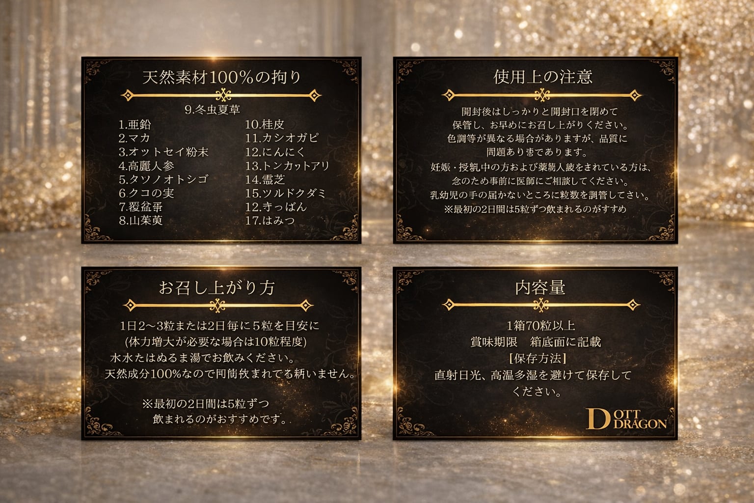OTT DRAGON オットドラゴン 美容 健康 美肌 亜鉛 サプリメント バレンタイン 薬膳 漢方 サプリ 健康食品 活力 スタミナ マカ 亜鉛 高麗人参 ウコン シナモン 桂皮